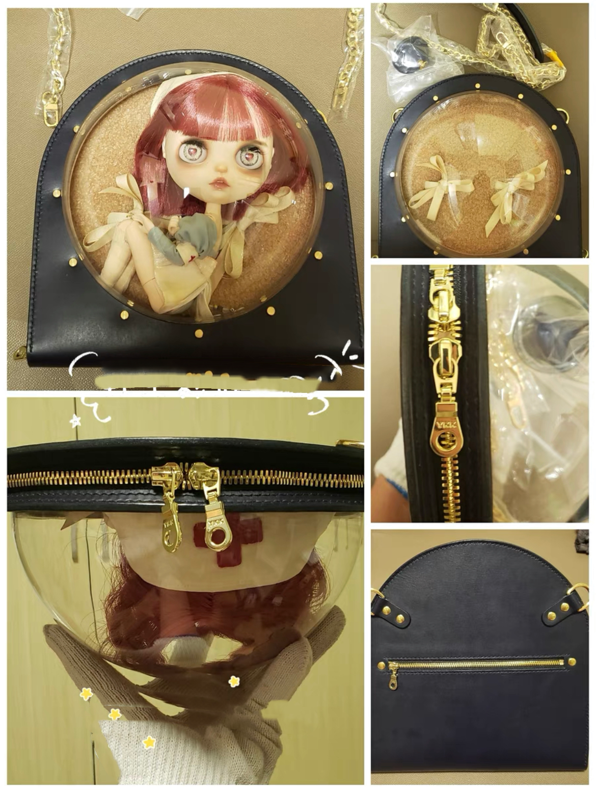 Material:cow leather, transparent window PVC lining